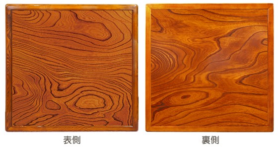 正方形の両面使用できるリバーシブルタイプのこたつ天板です。天板は面縁より落し込みタイプで、縁が若干高くなっています。お茶などがこぼれ落ちにくい構造です。