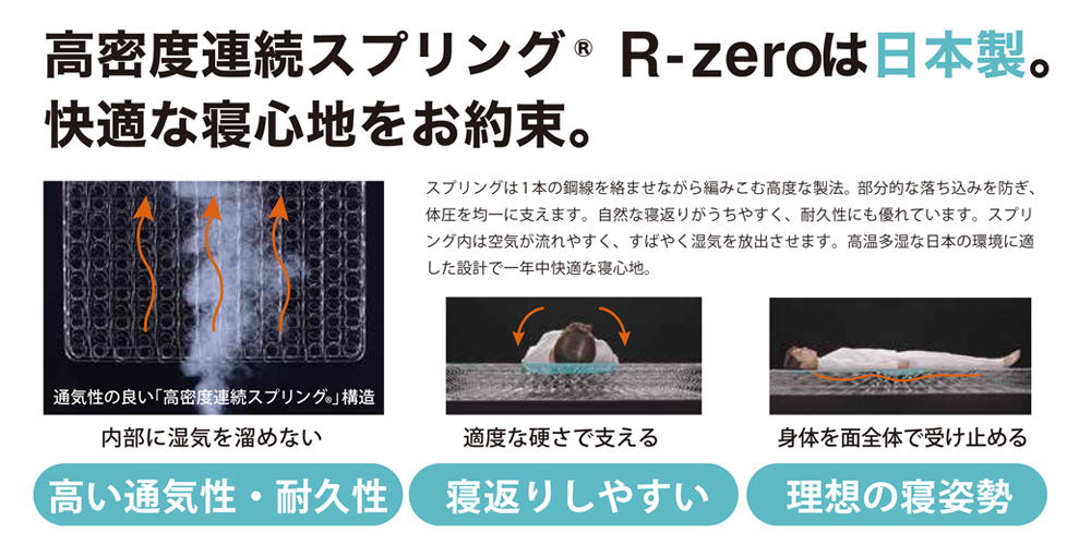 ■商品名:高密度連続スプリングマットレス ポルテ R-ZERO-300 シングル