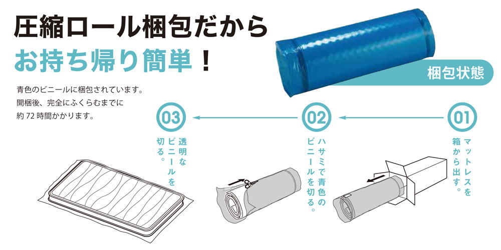 ※青色のビニールに梱包されています。開封後、完全にふくらむまでに約72時間かかります。