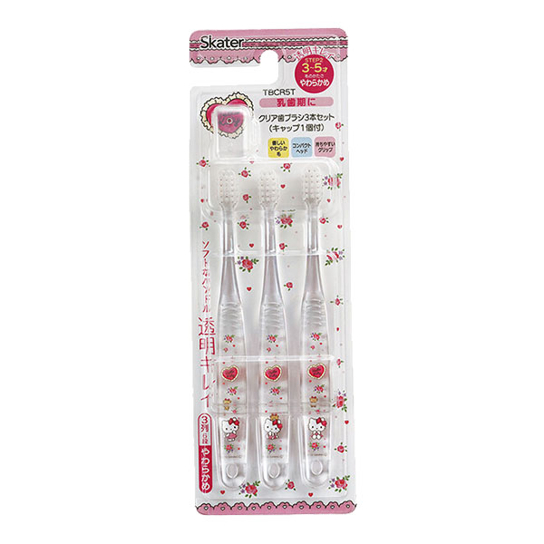 ハローキティ「ラブリーフラワー/クリア子ども歯ブラシ 3P (園児用)」