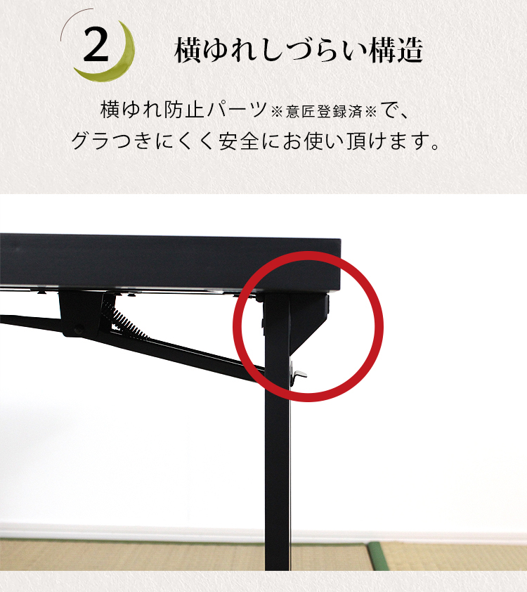 意匠登録済の「横揺れ防止パーツ」を採用。