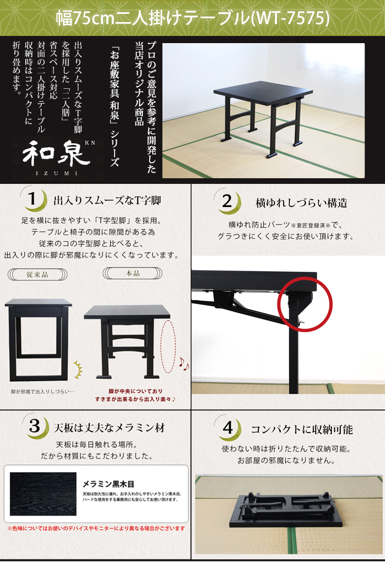 ・お座敷テーブル「和泉」幅75 2人掛け用 WT-7575×1卓