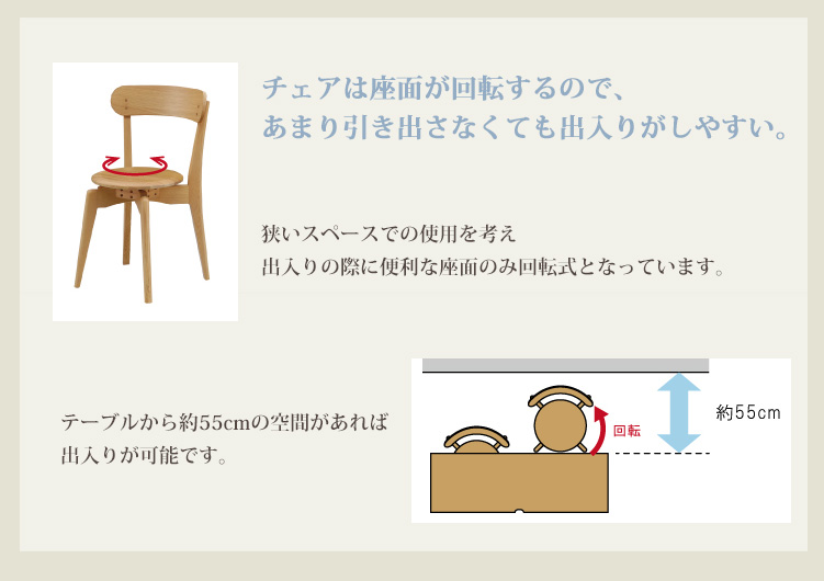 ■備考・ダイニングスペースの確保が難しい場合など、省スペースでダイニングセットの配置を実現。