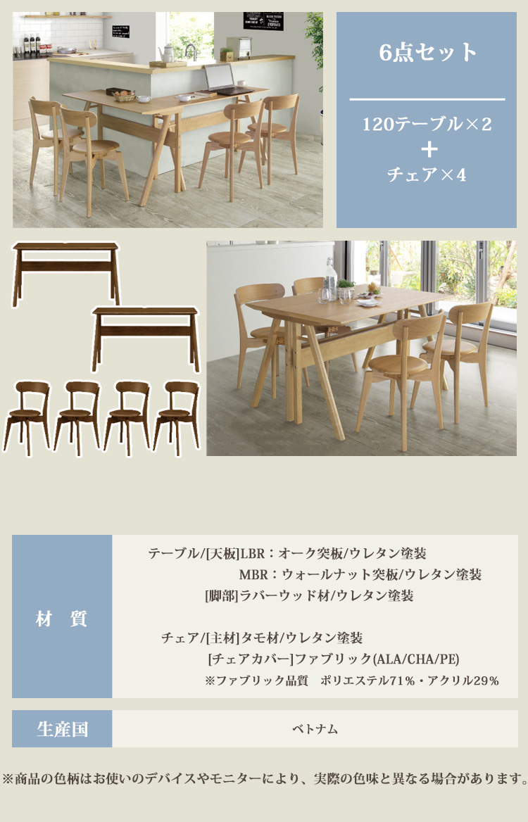 ■材質【天板】MBR:ウォールナット突板 LBR:オーク突板