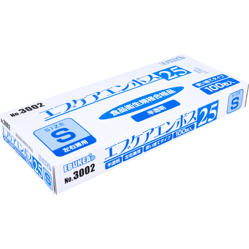 【業務用】 No.3002 エブケアエンボス25 食品衛生法適合 使い捨て手袋 半透明 Sサイズ 箱入 100枚入