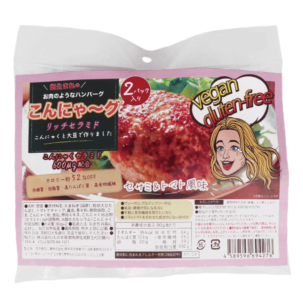 ※こんにゃ〜グ リッチセラミド セサミ&トマト風味 2パック入 レトルト ハンバーグ