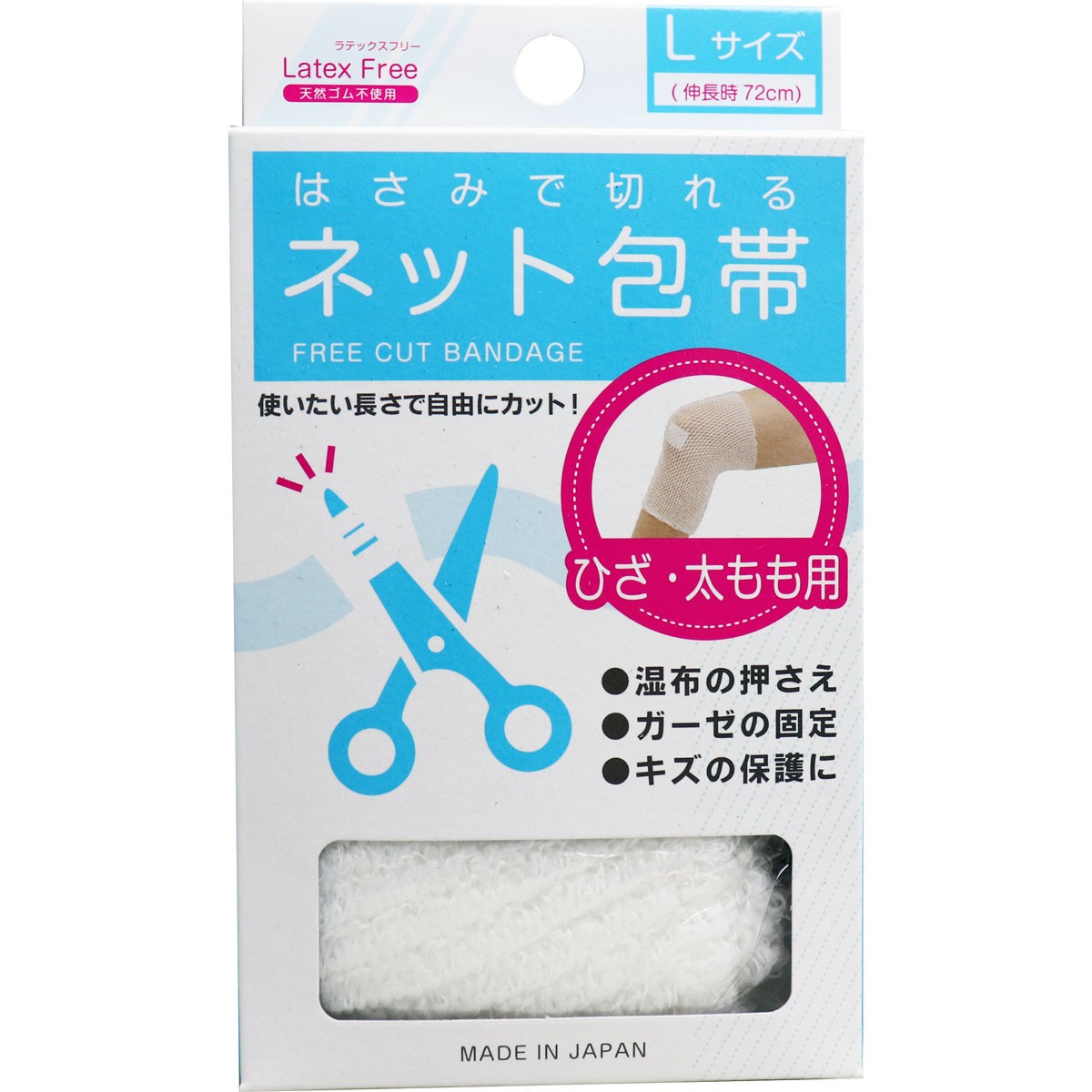 ●ラテックスフリー素材を使用。天然ゴム不使用のネット包帯です。横幅の伸縮率は6?7倍で使用部分にぴったりとフィットします。