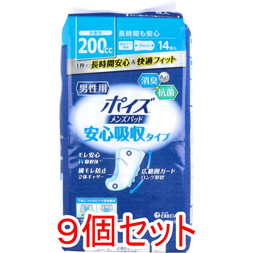 ポイズ メンズパッド 安心吸収タイプ 多用量 200cc 14枚入×9個セット ケース販売