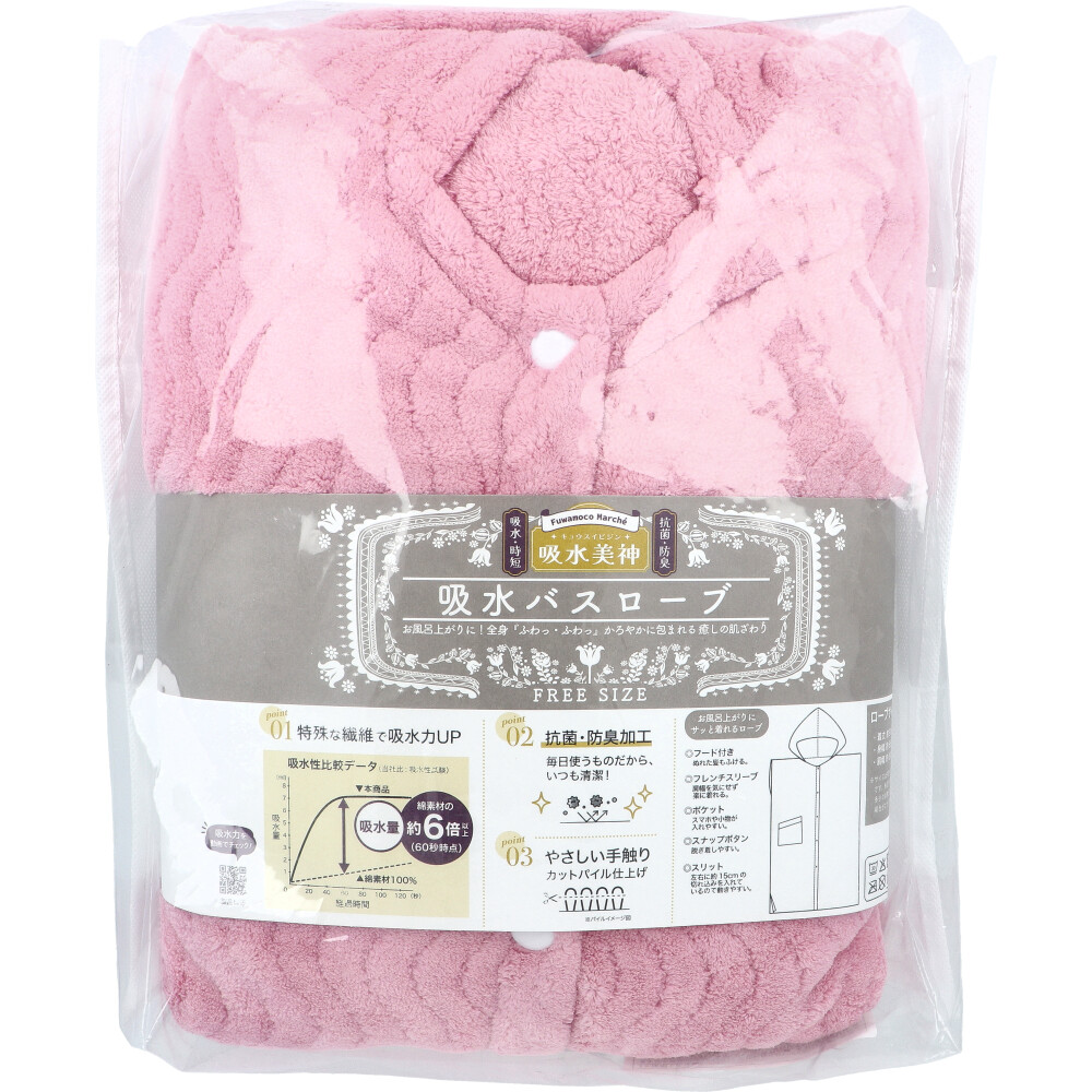 フワモコマルシェ 吸水美神 キュウスイビジン 吸水バスローブ フリーサイズ ピンク