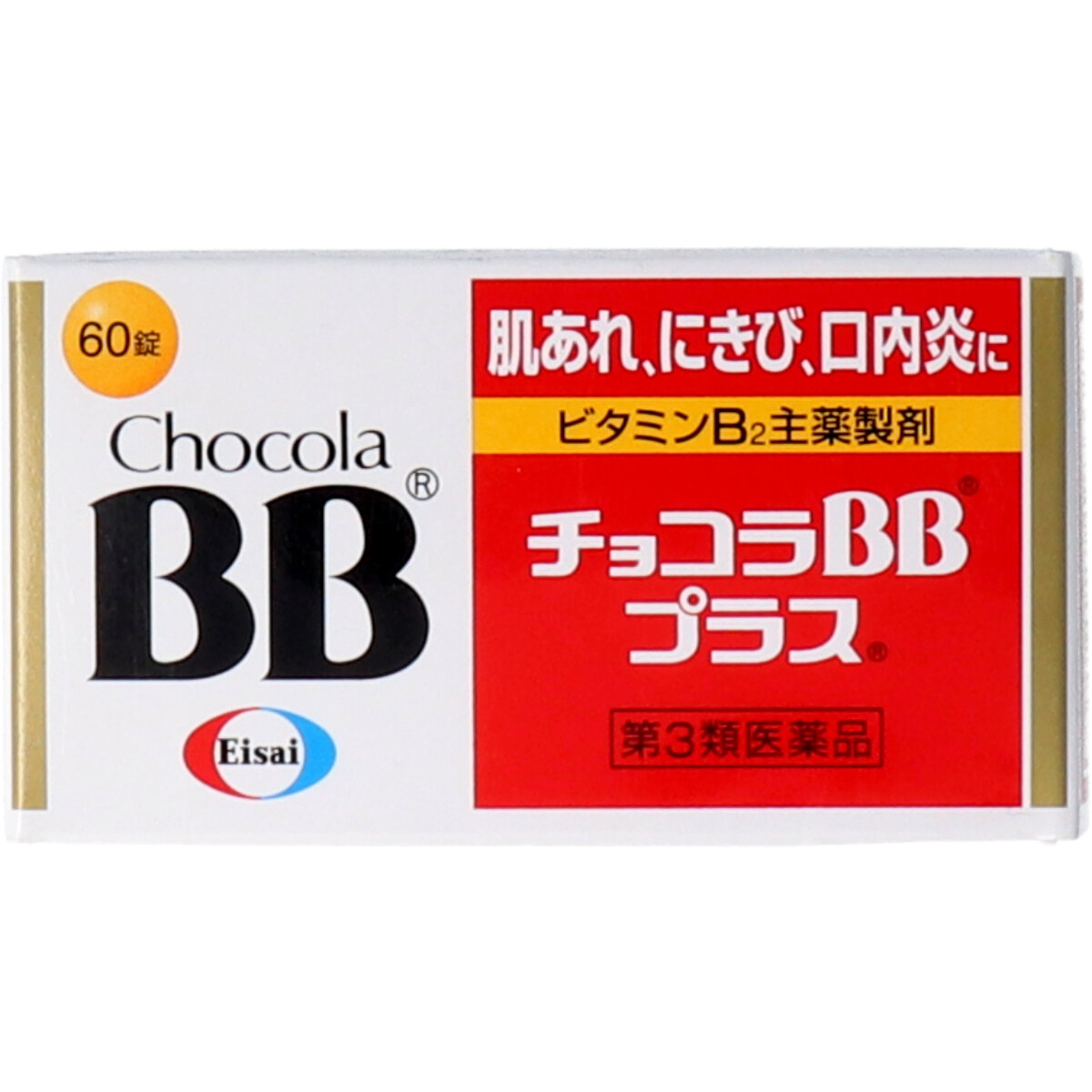 チョコラBBプラスは、肌あれ、にきび、口内炎の緩和と、疲れた時に効果的なビタミン剤です。