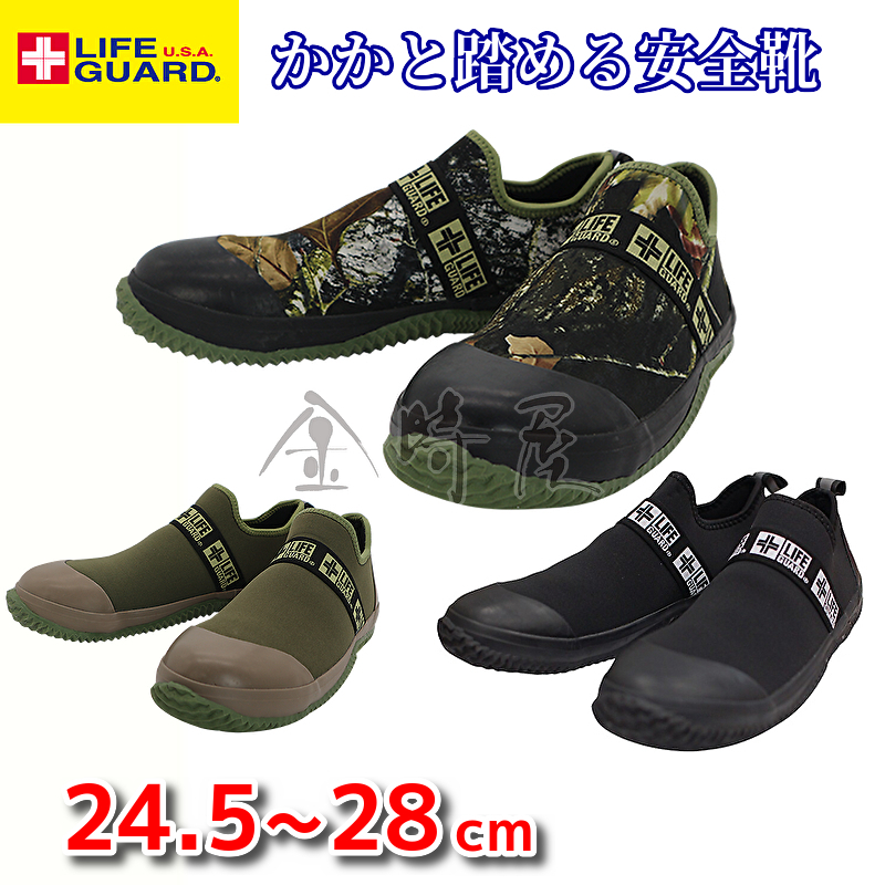 安全靴 ライフガード スニーカー スリッポン デッキシューズ ストレッチ 軽量 ネオプレーン 送料無料 ブラック グリーン カモフラ LA-04 セーフティーシューズ