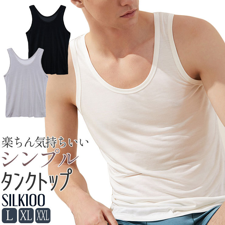 タンクトップ シルク100% ノースリーブ メンズ ランニング インナー 絹 シンプル ストレッチ ジャージー ホワイト/グレー/ブラック L/XL/XXL fts15