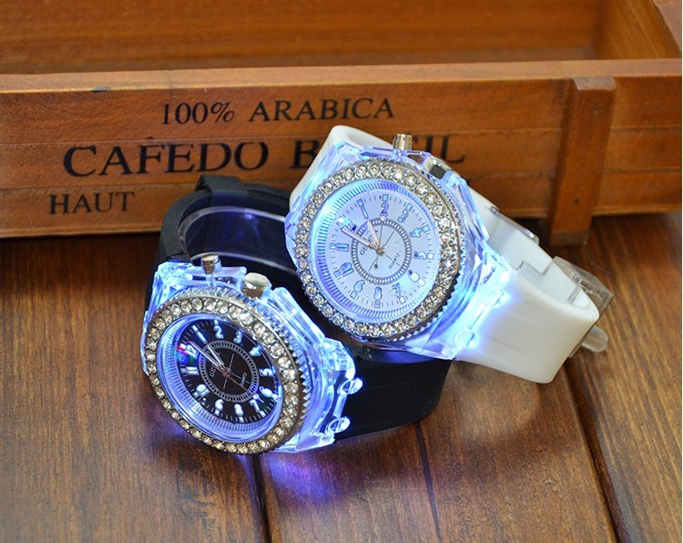 光る腕時計 スポーツ 光る レインボーLED腕時計 7色にフラッシュ発光