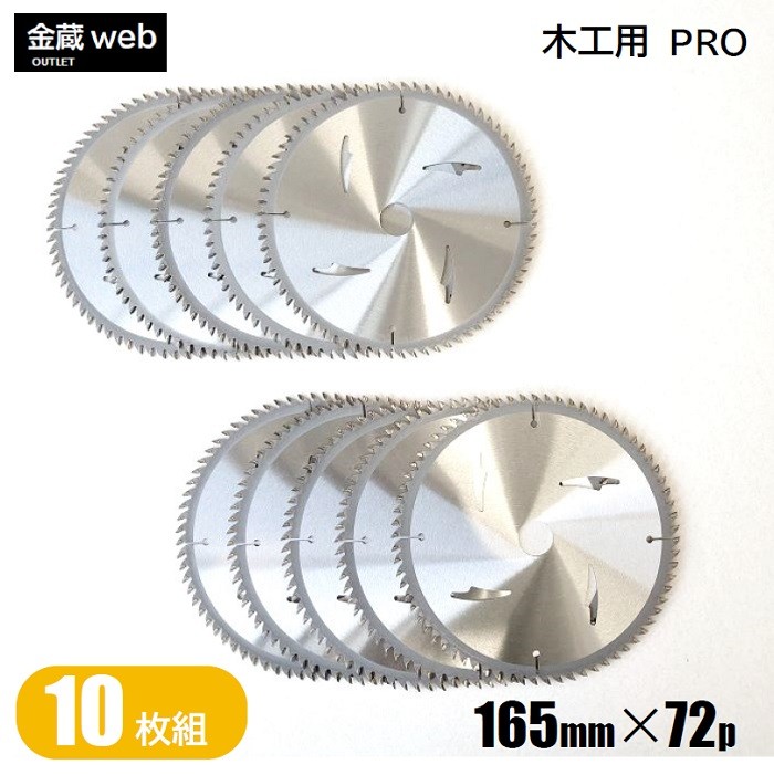 木工用チップソー 外径165mm 刃数72P アウトレット (10枚組) 精密造作用 一般木材用 合板用 電気丸ノコ用 充電式丸ノコ用 丸鋸 替刃