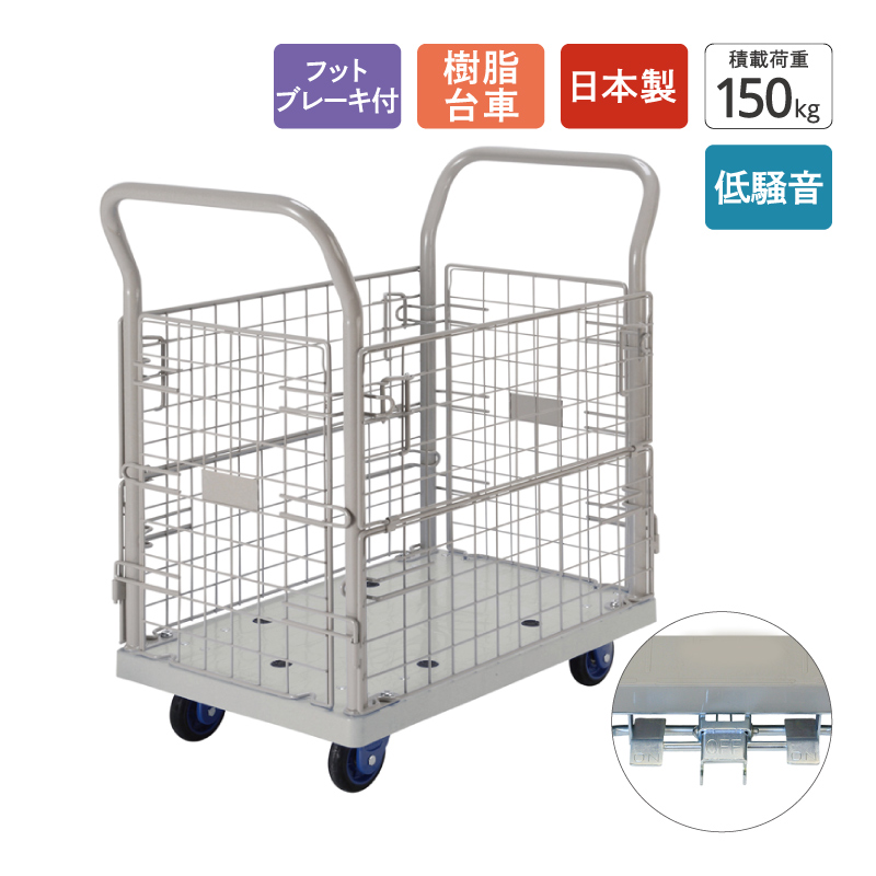 | 材質 | 荷台部:樹脂(ポリプロピレン) ハンドル部:スチール キャスター部:樹脂・ブタジェンゴム 金網:スチール ブレーキ部:スチール |