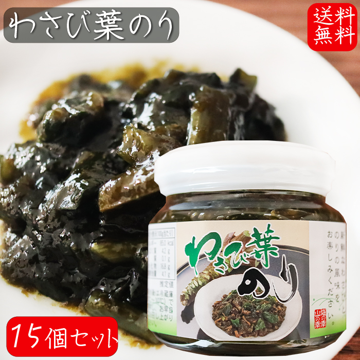 【ケース購入割引・送料無料】わさび葉のり 190g×15個 国産青さのり使用 わさび茎 海苔佃煮 ご飯のお供 お茶漬け 和風惣菜 ワサビ佃煮 山葵 ノリ お酒の肴 季折