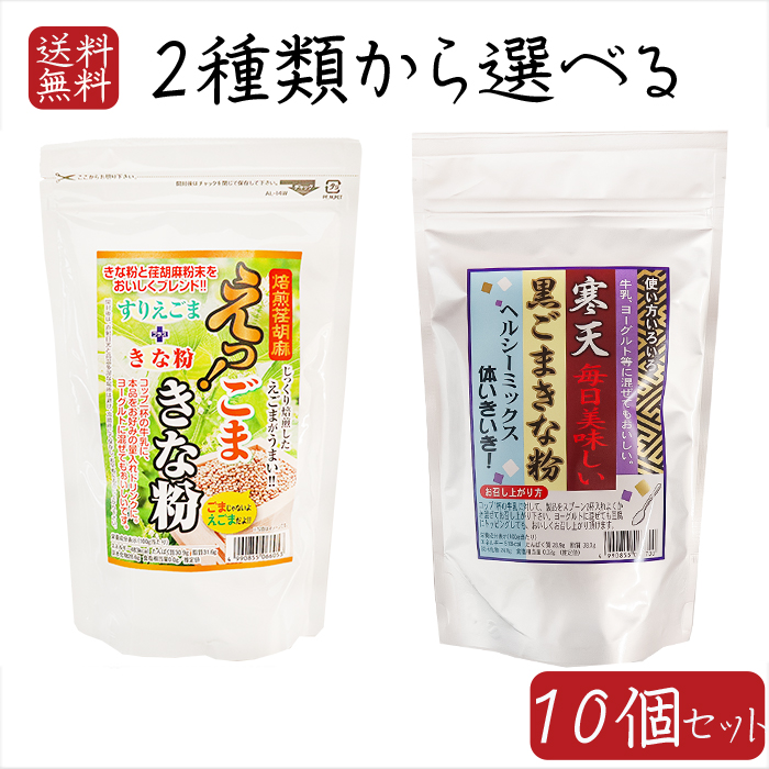 【送料無料】きな粉パウダー2種類から選べる10個セット えっ!ごまきな粉200g 寒天黒ごまきな粉250g荏胡麻きな粉 αリノレン酸 焙煎えごま ヨーグルト