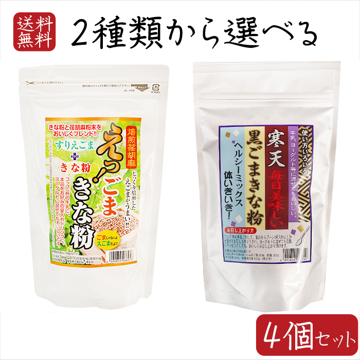 【送料無料】きな粉パウダー2種類から選べる4個セット えっ!ごまきな粉200g 寒天黒ごまきな粉250g荏胡麻きな粉 αリノレン酸 焙煎えごま ヨーグルト