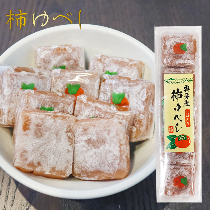 柿の風味とモチっとした食感が特徴のゆべしです。