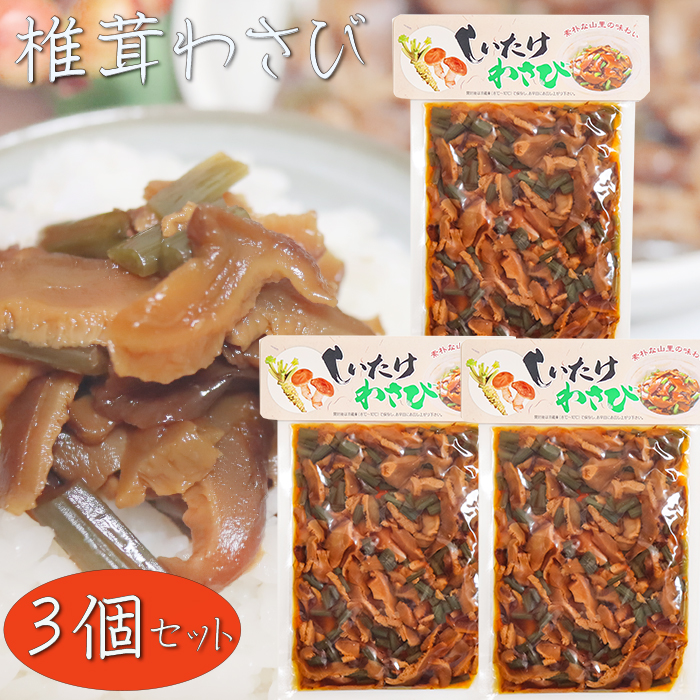 【送料無料】椎茸わさび 180g×3個 和風惣菜 茎わさび ご飯のお供 山葵 ワサビ シイタケ