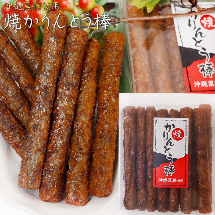 沖縄産黒糖を使用した「焼かりんとう棒」は、約14センチのスティックタイプで、食べ応え抜群の一品です。