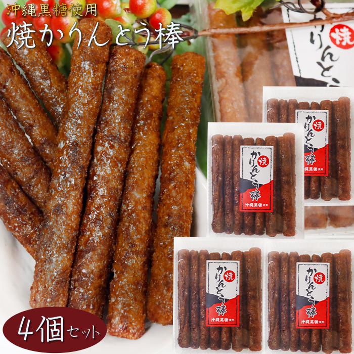 【送料無料】焼かりんとう棒 130g×4個 約14センチのかりんとう 沖縄黒糖使用 菓子 黒糖かりんとう お茶請け おやつ 季折