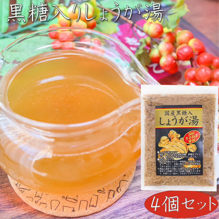 【送料無料】国産黒糖・生姜粉末使用 黒糖入りしょうが湯 180g×4個 国産生姜粉末使用 生姜湯 ショウガ湯