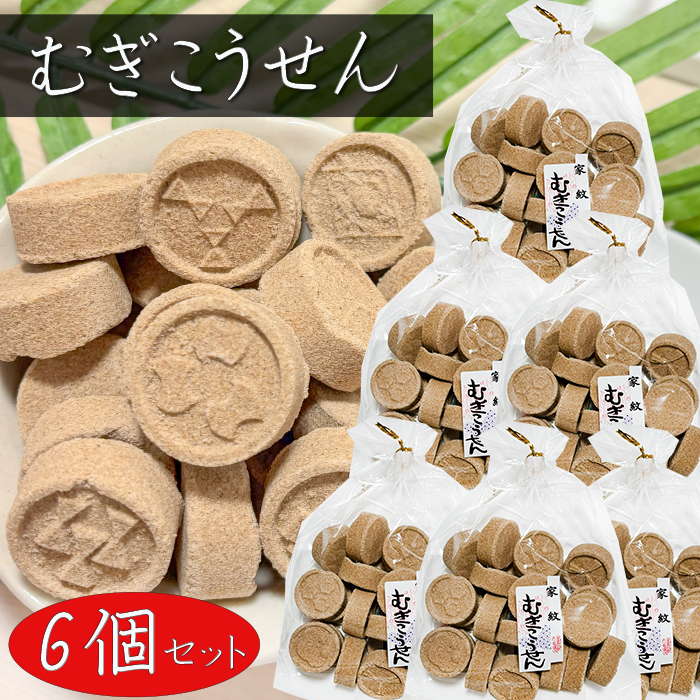 【送料無料】むぎこうせん 150g×6個 家紋むぎこうせん 落雁 干菓子 麦こがし らくがん 和菓子 お茶菓子 駄菓子 おやつ 無添加 季折