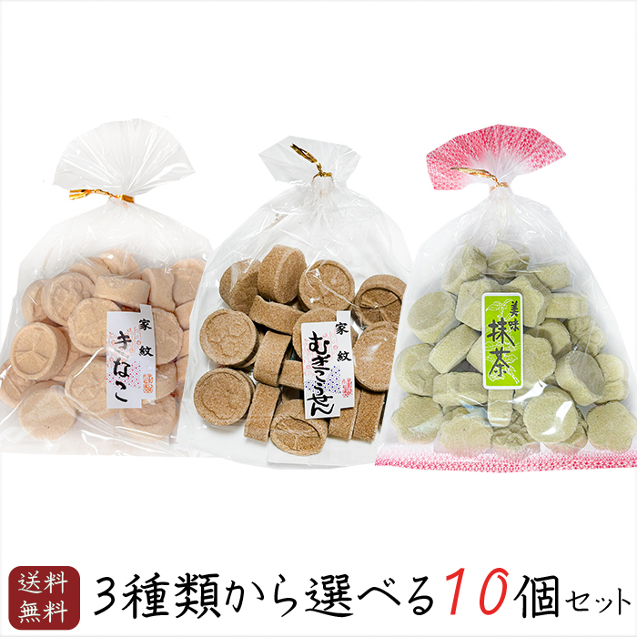 【送料無料】落雁3種類から選べる10個セット きなこ家紋打ち150g 家紋むぎこうせん150g 抹茶打150g 落雁 干菓子 らくがん 和菓子 お茶菓子 駄菓子 おやつ 無添加
