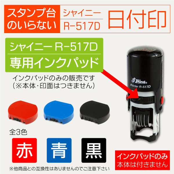 インクパッド シャイニーR-517D専用 インク浸透印連続捺式用 サンビーデーター印赤青黒 回転データー印用 R-517D-7