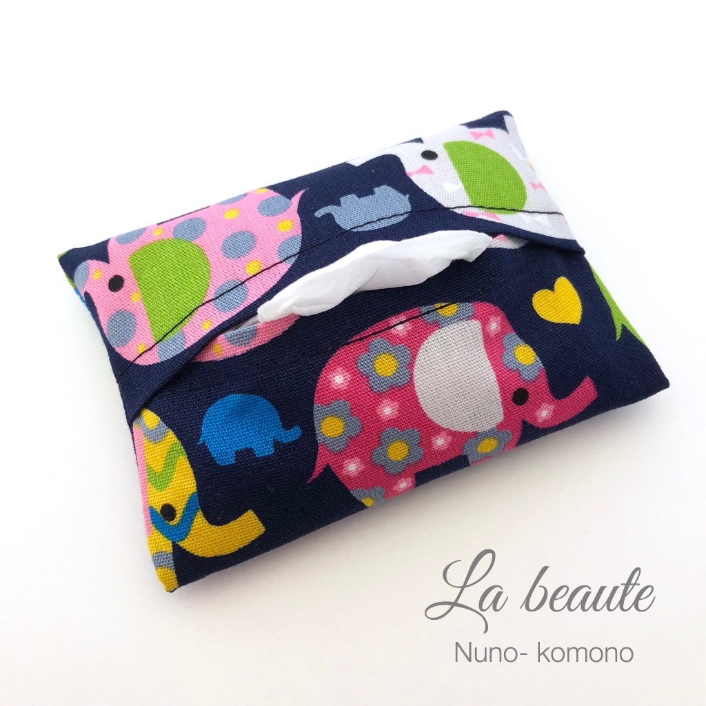 ポケットティッシュケース 子供 女の子 ミニ ぞうさんネイビー ポケットティッシュカバー 子供用 子ども