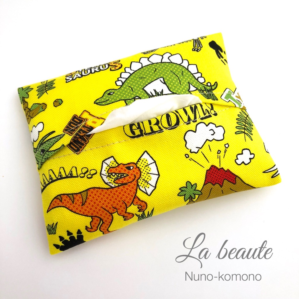 ポケットティッシュケース 普通サイズ 恐竜イエロー 男の子 ポケットティッシュカバー 子供 子ども 子供用