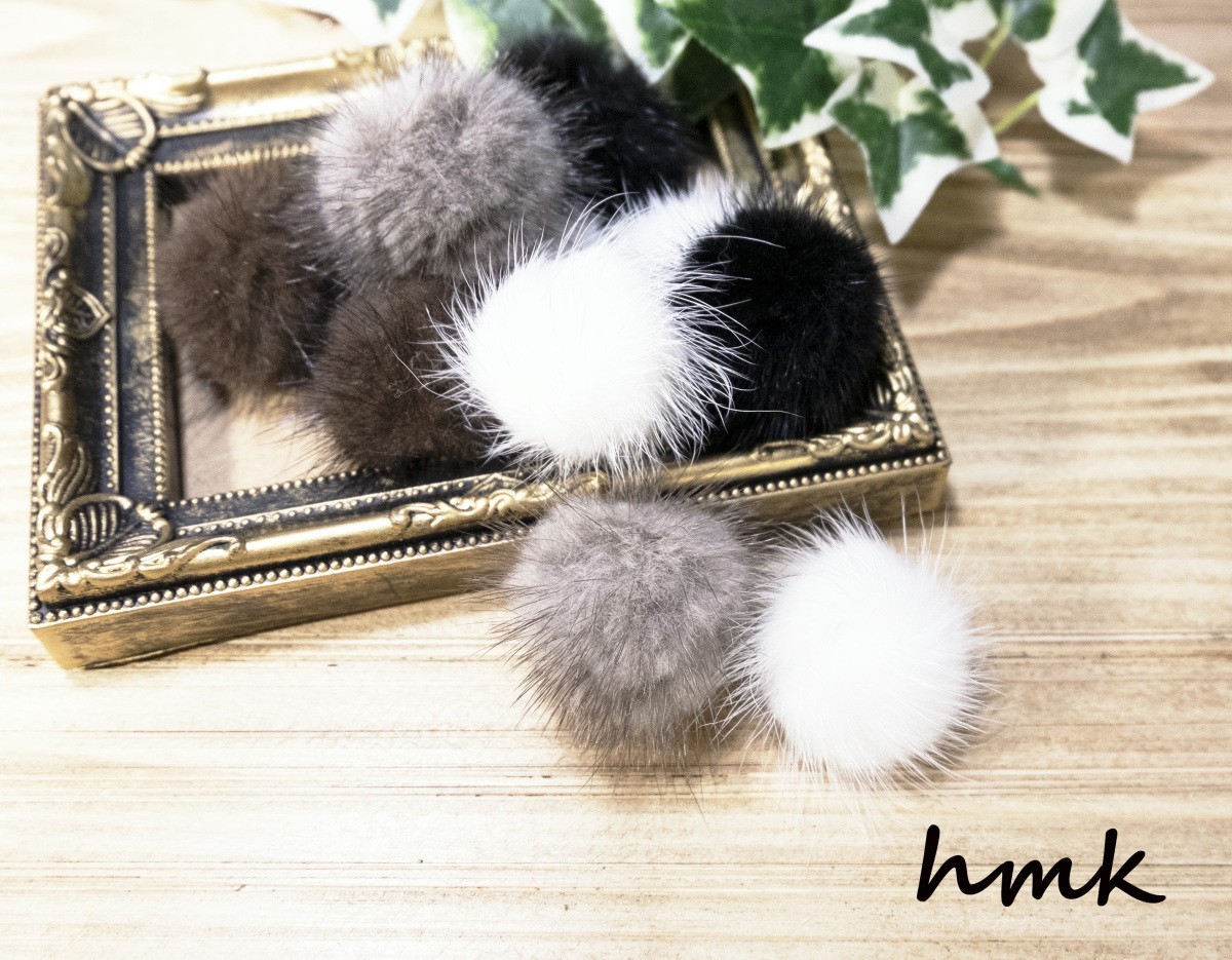 アクセサリーパーツ ミンクファー 3cm 4個セット 全4色 ゴム付き ピアス キーホルダー