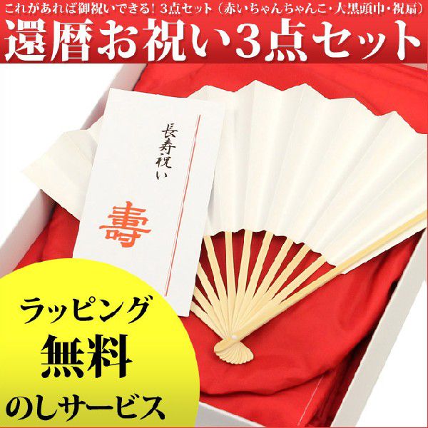 ※還暦・長寿の祝着のご紹介です。柔らかくてあったか〜い中綿のたっぷり入った赤いちゃんちゃんこと大黒頭巾、還暦祝扇の3点がセットになった、とっても便利なセットになります。ポリエステル素材ですので、着心地といたしますとアセテートよりは少し劣りますが、写真撮影などのご使用には十分に着ていただけます! ※お急ぎの方への即日発送も承ります。クレジットカード、代金引換でのご注文の方は、毎日12時までのご注文に限り、即日発送いたします。銀行振込、郵便振込でご注文の方は、15時の入金確認にて確認されれば、その日に発送いたします。ただし、土、日、祝、及び当店の休業日は、対応できかねますので、予めご了承下さい召せ。 ◇ラッピング、のしにも対応いたします。ご注文後の個人情報等の記入の画面『STEP3のお支払い方法、配送方法選択』ページの最下部の『その他、配送についてご希望がある場合は、こちらにご記入下さい』の欄に【表書き、贈り主様名】をお書き添え下さい。また、コチラの商品に関しましては、また、お買い上げ明細書の有無もお選び下さい。特に、プレゼントとしてお贈りいただく場合は、『いらない』をお選び下さい。 |