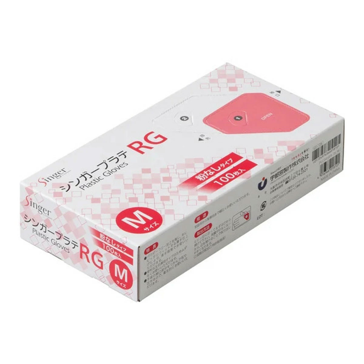 [売り切れました] 宇都宮製作 プラスチック手袋 シンガー プラテRG Mサイズ 粉なしタイプ 100枚入