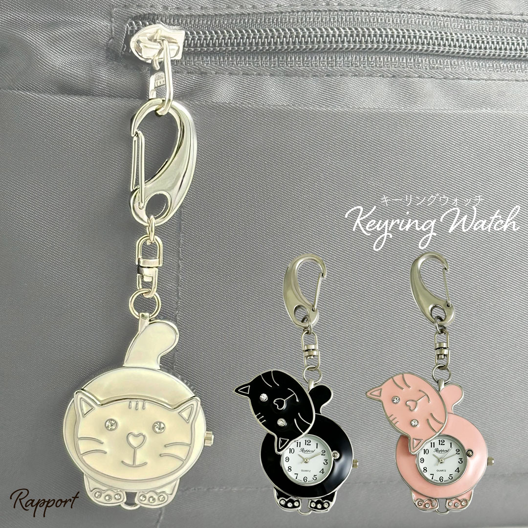 懐中時計 可愛いネコさんのスライド式キーホルダーウォッチ 3種類のカラー