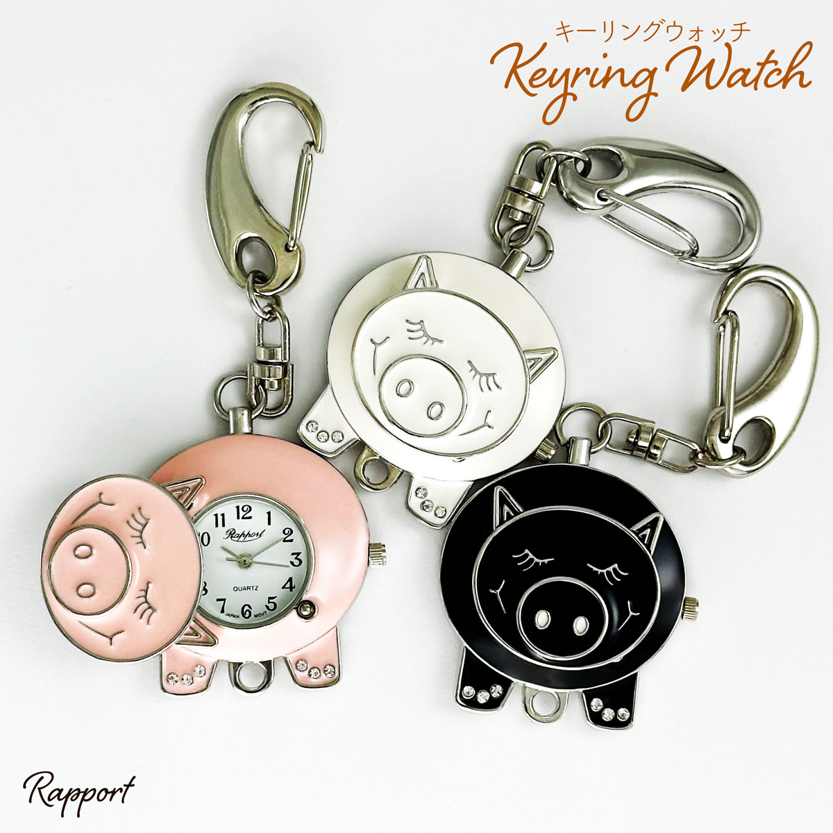 毎日がもっと楽しくなる♪ 可愛いブタさんのスライド式キーホルダーウォッチです。ユニークなデザインと時計が傷つかない便利なスライド式の蓋で、時間を確認するたびにほっこり笑顔に。カラーバリュエーションは黒ブタさん、白ブタさん、ピンクブタさんの3種類。バッグにぶら下げたり、鍵につけて通勤通学いつでも一緒にお出かけ。自分用にもプレゼントにもぴったりです!皆様に愛される懐中時計です。