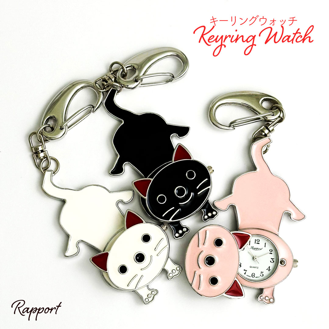 懐中時計 可愛いネコさんのスライド式キーホルダーウォッチ 3種類のカラー