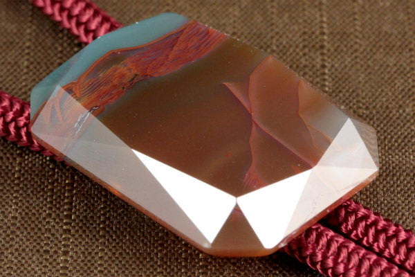 半透明の茶色の石に茶色層状模様が入り独特な模様をしています。