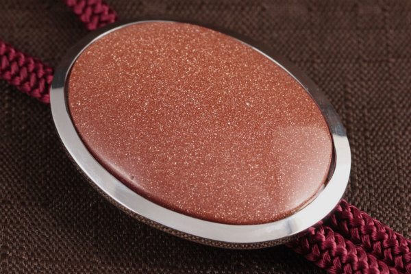 石の大きさは30ミリ×40ミリ 厚さ6ミリで、石を包むように幅3ミリ 厚さ1ミリのフレームが付いています。