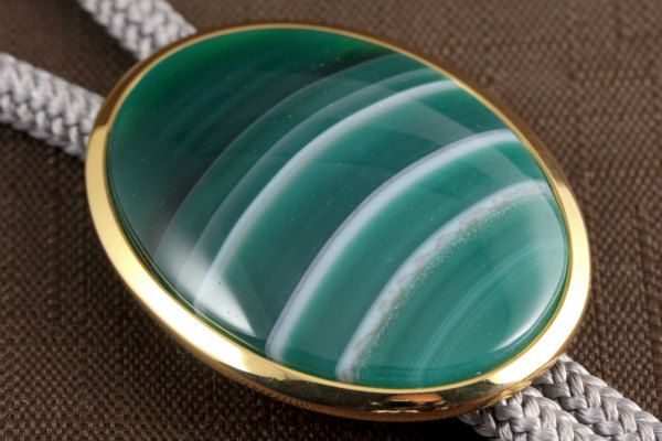 石はメノウクリソ(グリーンアゲート)で、緑の石に横縞模様が入っています。