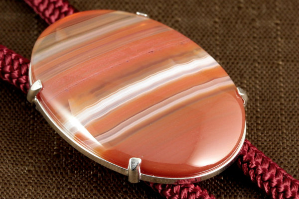 赤色の石に白や赤系の繊細な層状模様が入っています
