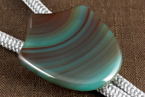 使用した石は、淡い緑色の石に茶色の層状の模様が入ったモンタナアゲートです。
