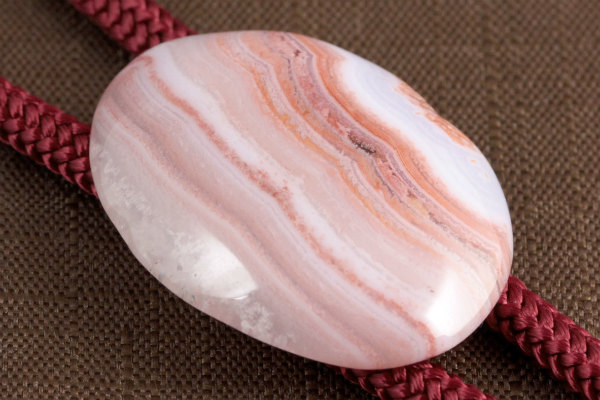 使用した石は、ピンク色と水色の縞模様が入ったピンクレースアゲートです。