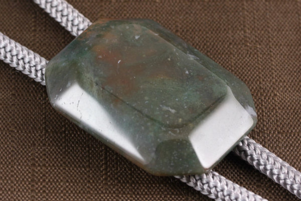 使用した石は、半透明に透ける石に深緑の苔模様が入ったモスアゲートです。