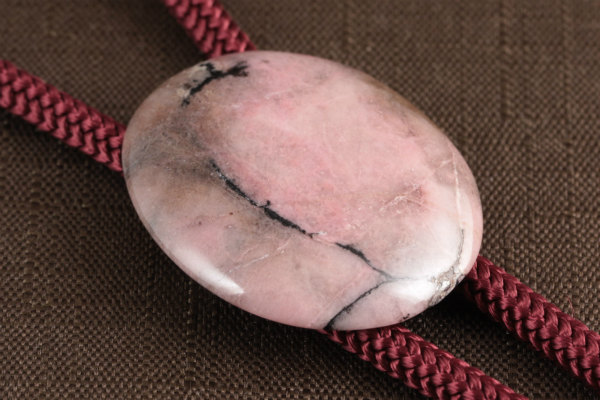石は落ち着いたピンク色に黒色や灰色の結晶が混ざったのロードナイト(バラ輝石)を使用しています。