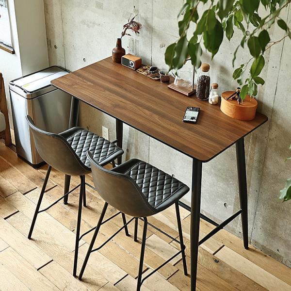 ウォールナットカラーの木目を再現したメラミン樹脂を使用した天板とブラックスチールの組み合わせがヴィンテージ感を演出してくれるカウンターテーブル、VIVIT(ビビット)。