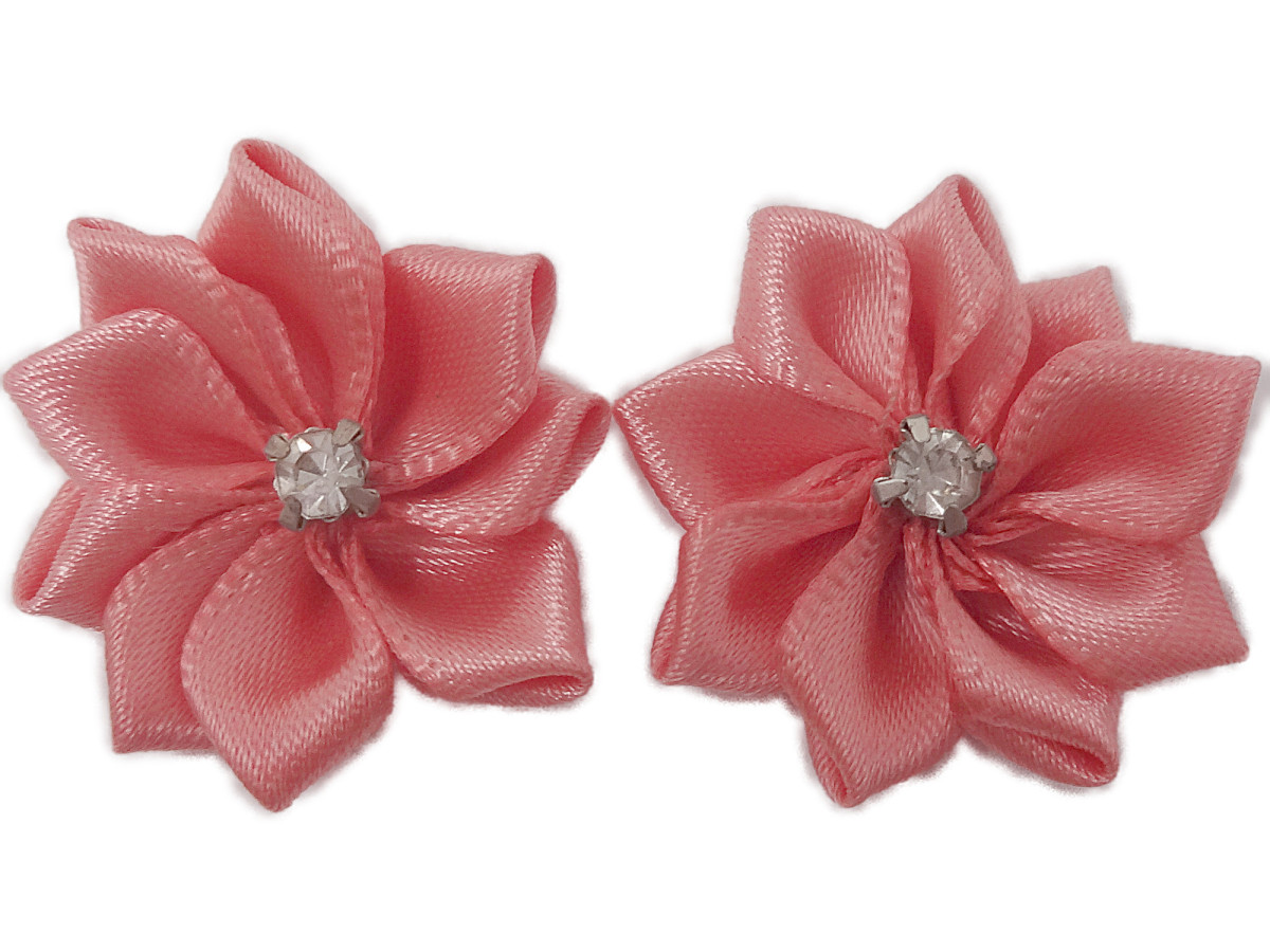 キラリ手芸部 No.1598ビジュー パーツ付きフラワーモチーフ(サーモンピンク)2.5cm×2.5cm×2個(手芸用)