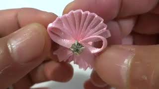 クリスタルのビジューの付いた、ピンク色のフラワーモチーフです。