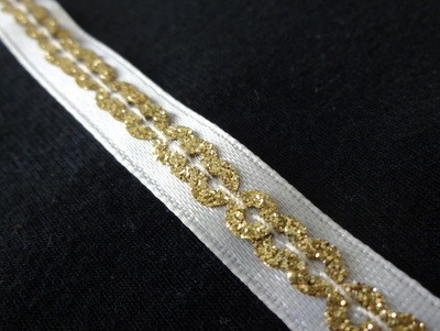 サテンテープにスパンコールが縫いつけてある形のスパンコールテープです。手芸・リメイク等、制作段階で大変扱いやすいのがこの商品の特徴です。また白のサテンテープに金のスパンコールが縫いつけてあるシンプルな構成のスパンコールテープのため、作品のイメージを崩しません。